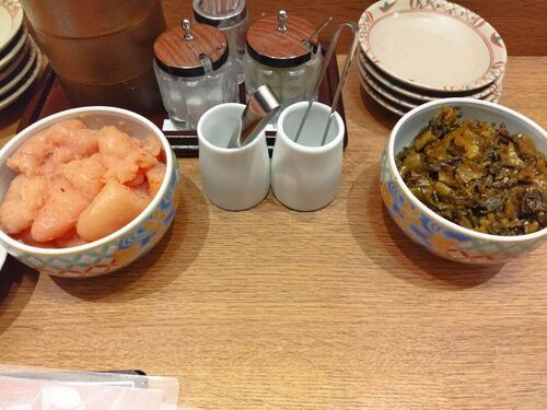 博多天ぷらのやまみでは、辛子明太子と辛子高菜が食べ放題という嬉しいサービスがあります。